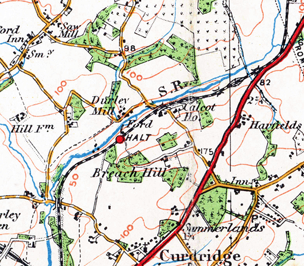 Following a petition from the residents of Durley, a halt was opened on 23 December 1909 at a point close to Durley Mill to serve mill workers and the Calcot and Frogmill areas.