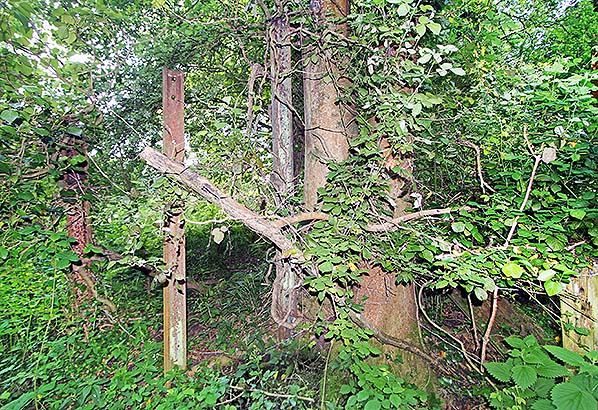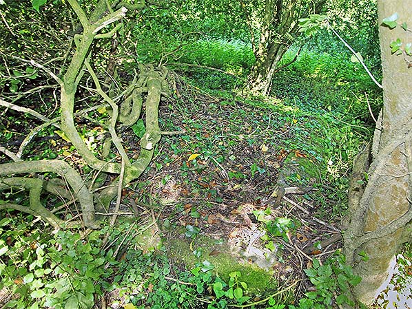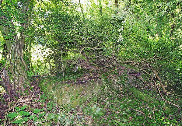 After closure in 1932, the platform facing and edging was removed along with all fixtures and fittings leaving a degraded mound of earth and cinders and the concrete base of the waiting shelter.