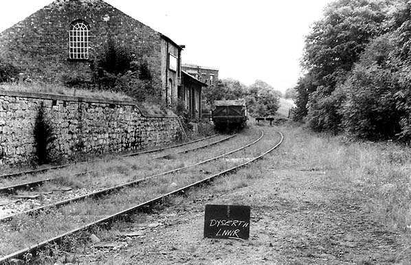 ![]() Station Name: DYSERTH [Source: Paul Wright] ![]() Looking south-east towards the buffer stops from the site of the platform at Dyserth station in December 1972. At this time the station was still an active railway location. Train loads of stone were dispatched daily from the station. The Co-op Vale of Clwyd Farmers' warehouse is seen on the left.