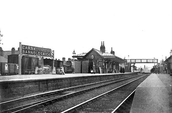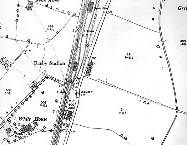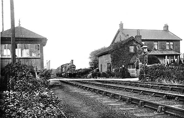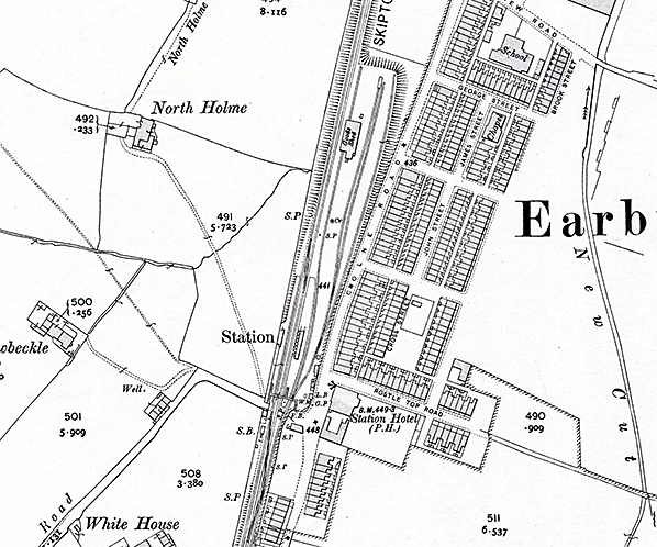 Earby station had three platform faces comprising a side platform west of the line and an island. Although intended for passenger use the outer face of the island was not served by a through line; beyond the platform the line ran the length of the goods yard and through the goods shed. The main station building was on the island platform, reached by a lattice footbridge from Colne Road. It was a somewhat plain single-storey sandstone structure with a ridged slate roof; a hipped ridge-and-furrow verandah on each platform face extended half the length of the building. Within were the booking office, waiting rooms and toilets. A similar, but shorter, stone building without a verandah stood on the up platform. The goods yard was sandwiched between the line and Colne Road. The main station entrance also served the goods yard where a weighbridge and weigh office were sited, with a secondary entrance further along Colne Road. There were initially two long sidings running parallel, one passing through the stone-built goods shed and the other passing east of it to a small end-dock. A 5-ton crane stood between the two sidings south of the goods shed. Two additional sidings were built east of, and parallel to, the existing ones. The outer face of the island was originally used by Barnoldswick branch trains, but latterly it was used only by the Saturday midday service and specials such as the Skipton Gala trains. Immediately south of the station was a level crossing on Salterforth Road. Earby Station signal box south of the crossing, on the up side, controlled the crossing and access to the goods yard. About 800yd north of the station, where the road to Skipton (now A56) crossed the railway was another box, known as Earby Crossing (but formerly Earby Gate House). When the Barnoldswick Branch opened, a further box was brought into use at Barnoldswick Junction. For a short time, a box named Earby Junction was in use a short distance south of Barnoldswick Junction; it is understood to have opened in 1916 to control access to and from the Ministry of Munitions explosives store sidings and will have been decommissioned when the store closed, prior to 1923.