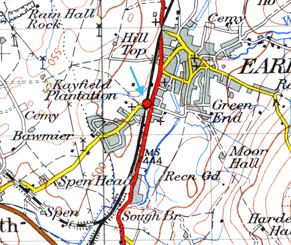 Notes: Earby is a small town (population about 6,100) in the broad valley which provides the lowest Pennine crossing between Yorkshire and Lancashire. This valley was used by the Leeds & Liverpool Canal, opened throughout in 1816. Thanks to its increased accessibility Earby developed into a small textiles centre, with cotton mills employing many of the local people. From 1848 until 1970 the valley was also followed by the Skipton-Colne railway which, unlike the canal and other trans-Pennine routes, managed to pass through the hills without any tunnels. Until April 1974 much of the route of this railway, and its branch to Barnoldswick, lay within the West Riding, but a particularly insensitive government decision redrew the boundary and handed the West Craven area to Lancashire. Thus Earby and Barnoldswick are in the Lancashire Borough of Pendle, and four decades later there is still resentment at their transfer from the White Rose to the Red Rose county.