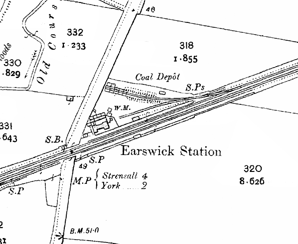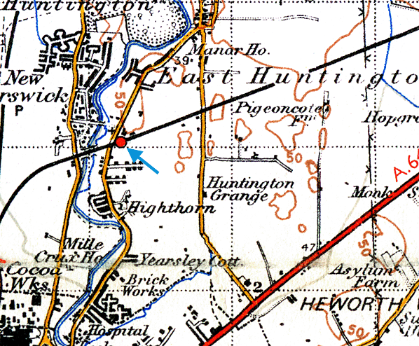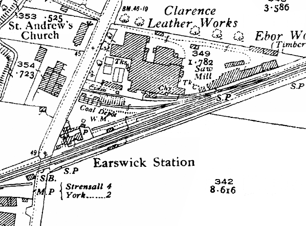 Notes: Although the York - Market Weighton line opened on 4th October 1847 it is unclear when Huntington station opened. It might have been on the same date as the line, although it did not appear in public timetables until June 1848. Initially the station did not attract many passengers. In August 1850, the directors heard that receipts barely exceeded the stationmaster's wages, and it was resolved to close it and give a platelayer occupation of the house. Later they had a change of heart; the stationmaster, Mr Naylor, was allowed to remain rent-free on condition that he attended to the gates there - and the station remained open. As part of the NER policy of renaming stations whose name might have been confused with that of another station, Huntington was renamed Earswick on 1st November 1874. The station had two facing platforms. The main station building, which incorporated the stationmaster's house, was at the west end of the down platform, adjacent to the level crossing, and was similar in design to station houses and crossing keepers’ houses both on the Selby to Market Weighton and York to Market Weighton lines. It was a two-storey brick building with twin gables and a recessed central section between the two wings. The booking office was usually located in one half of the ground floor but photos indicate that at Earswick the booking office was a separate single storey timber building adjacent to the crossing at the end of the down platform. Timber waiting shelters, built to the standard NER design, were sited on both platforms. A signal box was sited on the far side of the level crossing on the up side. This controlled the crossing gates and access to the goods yard. This comprised two sidings, one serving a cattle dock behind the up platform and the other serving coal drops. The weigh office and weigh bridge were between the sidings at the rear of the station building. A private siding was later provided for the Clarence leather works and Ebor timber which were built in the 1930s, with another siding on the west side of the road serving the Eborcroft Works. Earswick survived the early closures and remained open until final closure of the line. The goods service was withdrawn on 7th June 1965 followed by passenger services on 29th November 1965. The station buildings were demolished in 1970/1971, and the platforms had gone by the mid 1970s. It was not long, however, before the arrival of railways would ensure the rapid decline in waterborne transport in the area. The Leeds & Hull Railway Company was formed in 1824 with George Stephenson appointed as engineer. He proposed three inclined planes to be worked by three stationary engines for the hilly route out of Leeds, but the remainder of the line was very nearly level. This L&HR was one of a number of contemporary projects aimed at linking the east and west sides of northern England. The Leeds & Hull scheme soon stagnated, due in part to the stock market crash of 1825. In the meantime, the Knottingley & Goole Canal opened in 1826, turning Goole into a viable transhipment port for Europe. The growth of Goole as a port to rival Hull was sufficient to spur the Hull-based shareholders of the Leeds & Hull railway into action. At the end of 1828, they motioned that the railway should be built as far as Selby, with the remainder of the journey to Hull being made by steam packet, most importantly, bypassing Goole. The shareholders passed the proposal at a general meeting in Leeds on 20th March 1829, and the Leeds & Selby Railway Company was formed. The shortened line from Leeds to Selby was resurveyed by James Walker in 1829; he reported that the stationary engines were not required, with tunnels and cuttings being built in their place. Despite strong opposition from the Aire & Calder Navigation, who had a practical monopoly on transportation in the area, a Bill was passed by Parliament on 29th May 1830 allowing construction of the double-track line. By 22nd September, a single complete line of track had been built, and the railway was officially opened to passengers from a temporary terminus adjacent to the quayside at Selby. Both lines were complete by 15th December 1834, on which date the railway began to take goods traffic.