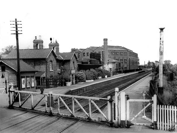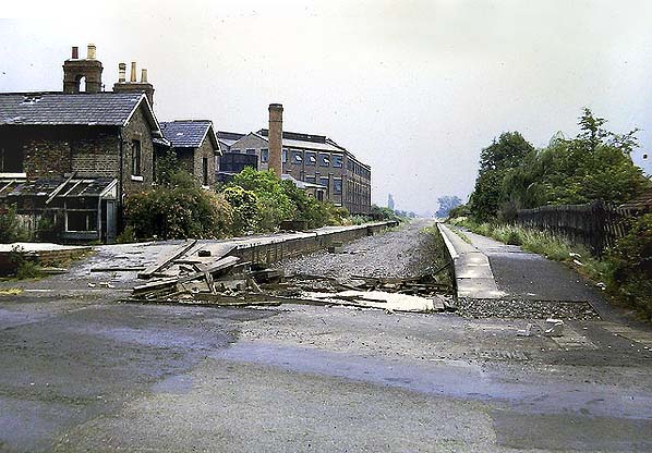 Present state: | No evidence of the station remains. The Flag & Whistle pub stands on the site of the station. A railway signal stands outside the pub. A modern office building stands on the site of the goods yard. |