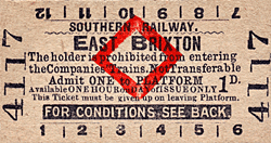 In 1923 the LBSCR was grouped into the Southern Railway. The Southern Railway had more miles of third rail track than overhead line so in 1928 the electric traction system on the route was switched. After nationalisation of the railways the line and station became part of the Southern Region of British Railways.