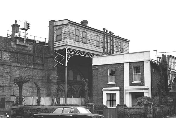 East Brixton Station westbound platform building seen from Barrinton Road in January 1975
