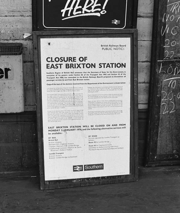 East Brixton Station closure notice in January 1975