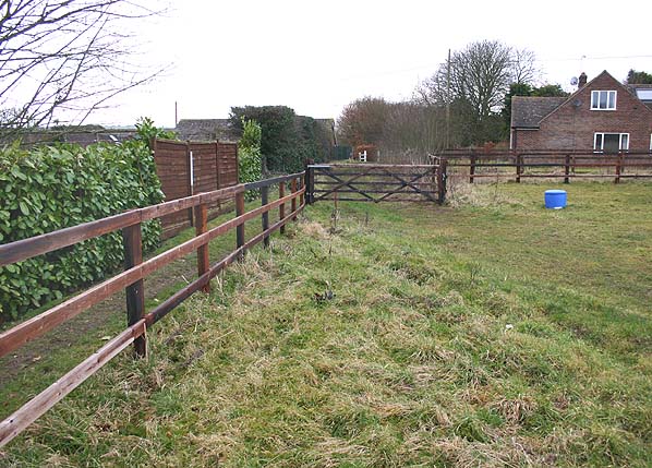 Looking west towards the site of East Garston Station in February 1969. The platform was in the gardens on the left while the Lambourn Way path follows the course of the line. Photo by Nick Catford