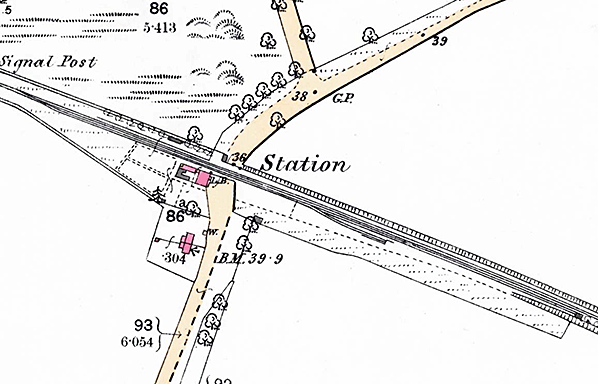 Photo Ken Blatch, East Winch station master ![]() ![]() 1885 1:2,500 (25") OS map. At this time the signal box at East Winch hadn’t yet been provided. LB indicates the station had a post box. Although there are two tracks running tjrough the station the track facing the main station building is a siding, there is only one platform on the down side - the platform edge is clearly seen.