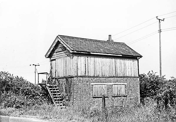 ![]() Station Name: EAST WINCH![]() East Winch signal box in July 1982. After remaining open for over ten years the windows and door have been boarded up to deter vandals.