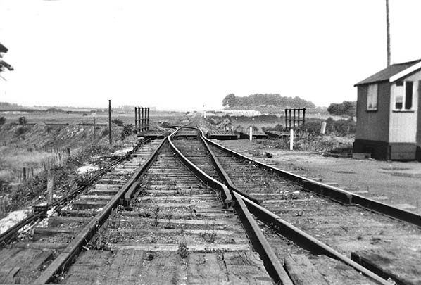 Eastry Station had a single 170' long brick faced platform on the up side of the line with a timber platform building. There was no siding but a passing loop was added in about 1920. A 12 lever locking ground frame located in a wooden shed controlled the loop and the junction. Eastry was one of five staffed stations on the line. The wooden hut eventually blew down and by closure in 1948 the loop had been converted into a siding. Track removal at Eastry was underway in May 1954.