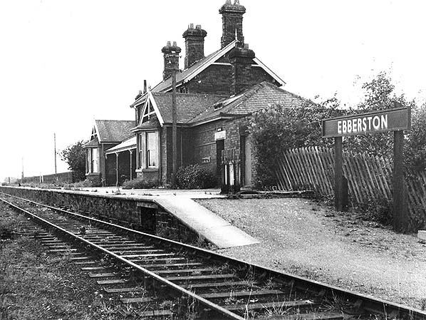 Notes: The station was originally called Wilton and was renamed to Ebberston on 1st April 1903 although the station was actually actually closer to Allerston, Wilton being one mile to the west and Ebberston one mile to the east. The station was built so far from Allerston village centre due to the major landowner not wanting the railway to be built. The small goods yard was on the down side of the line behind the station and had two sidings, one with a loop, serving coal drops and a cattle dock. There was a weigh office just inside the entrance to the yard and although plans show a number of other small buildings there doesn't appear to have been a goods shed. During LNER days, the station master at Thornton Dale was in charge of Ebberston. The track was lifted in 1953 and in 1955 the station building was sold to a Mr Craggs but the last Station Master, Mr Bouch, continued to live there with his family until 1960. The premises were then let to a farming contractor until 1966 when the contractor himself purchased the premises from Mr Craggs. A corrugated iron barn was built across the cattle dock and west end of the platform and a grain drier was built to the west of the barn. Part of the station building was used to store agricultural machinery with two windows being replaced by a large garage door. A variety of enterprises used the coal cells area after closure, which were roofed over and enclosed; including a blacksmith, a small engineering firm and even boat builder.