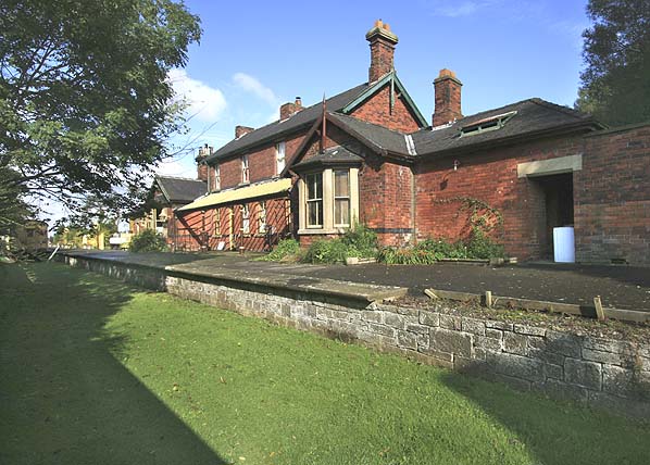 Present state: | The station has been restored to its 1930's state. The platform and station buildings are in excellent condition. The coal drops with an incline ramp, cattle dock, weigh office and weighbridge are all extant. The station signs are reproduction in LNER style. An original NER sign was found covering a drain but it is in very poor condition in two parts with a section missing. |