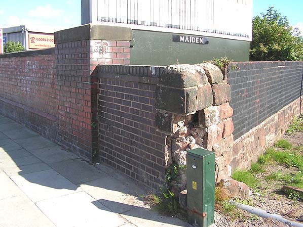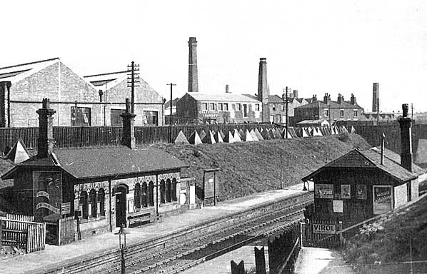 Edge Lane was opened after the passenger service had been extended to Canada Dock, first appearing in the timetable in November 1870. It was located in a cutting on the south side of its namesake which passed over the line on a bridge. The station had two platforms both of which were linked to Edge Lane by sloping footpaths. The main facilities were on the up platform (Liverpool direction). They were housed in a single-storey brick building of restrained elegance. The roof was of a half-hipped style above which rose two tall and slim chimneystacks. The doorway from the platform into the booking hall was beneath a segmental arch. To its right were two triple round-headed window openings, with a similar triple window to its left. Bricks of alternating colour added decoration to the window heads. An unadorned toilet block was added to the south-east end of the building.