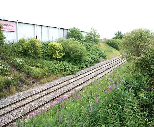 In 2017 there was no trace of the station but the line remained busy with freight trains.