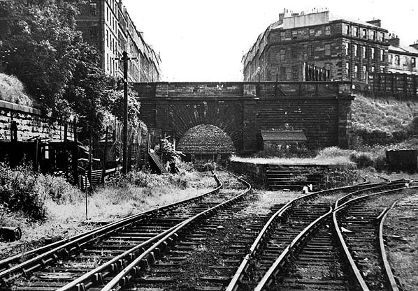 The site of Edinburgh Scotland Street station in January 1967.When the station opened in 1842 the tunnel had not been built. The passenger station was on the right side of the picture