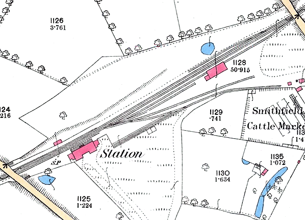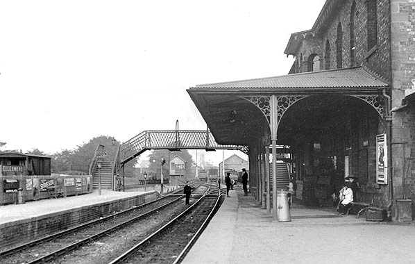 Ellesmere station had two platforms with a substantial building on the westbound side. The platforms were connected by a footbridge at the east end of the station. There was a large goods yard with an extensive network of sidings on both side of the line with a large goods shed on the south side of the line to the east of the station. There was a loading bank for livestock and |