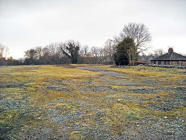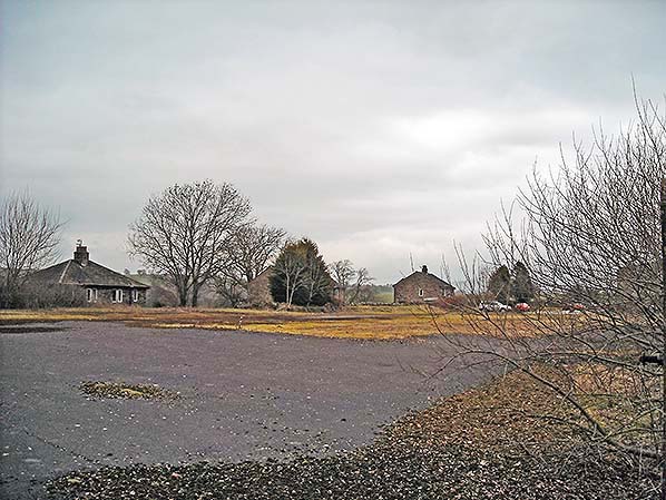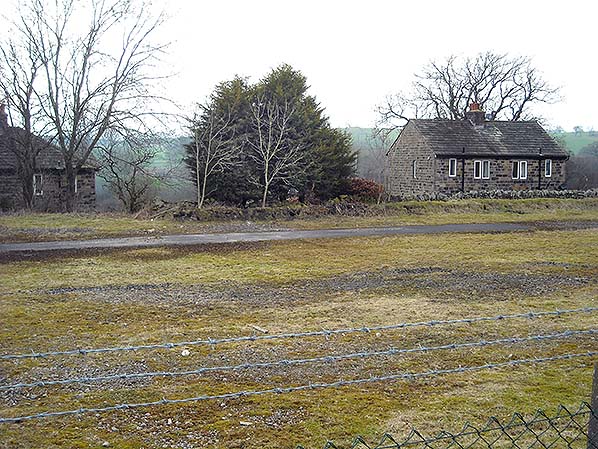 Photo by Alan Young ![]() ![]() Looking north-west at the site of Elslack station in February 2017. Fragments of the former up platform can be seen between the two houses.