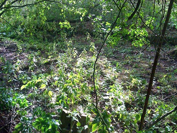 View from the overgrown up platform at Elton station in August 2011 looking towards the down platform that can be seen in the background.