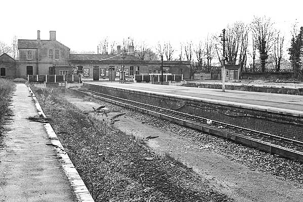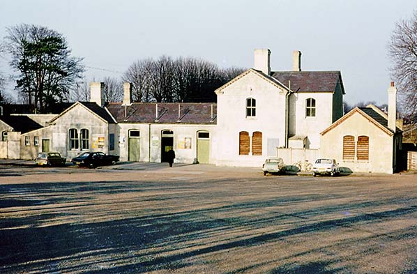 Photo by Alan Young ![]() Epsom Downs station forecourt in February 1975. The two-storey station house on the right is empty and boarded up.