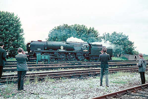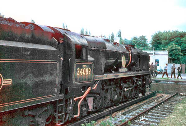 Photo by Robert Bridger from 30937 Transport Photograph Database ![]() The Southern Counties Touring Society 'Surrey Rambler' railtour is seen at Epsom Downs station on 5 July 1966. 34089 (‘602 Squadron’) was built in December 1948 and was withdrawn from 72B Salisbury shed 0n 31 July 1967 to be cut up at Cashmores, Newport in September 1968.
