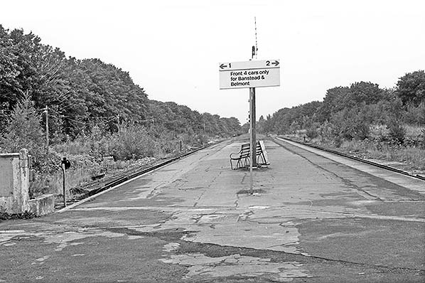 Epsom Down station looking north-east from the station concourse in the 1980s.