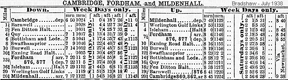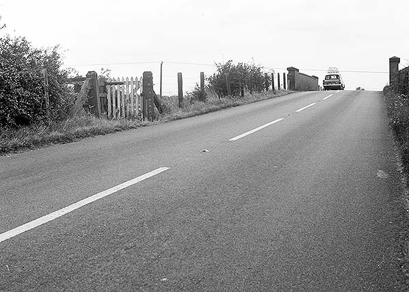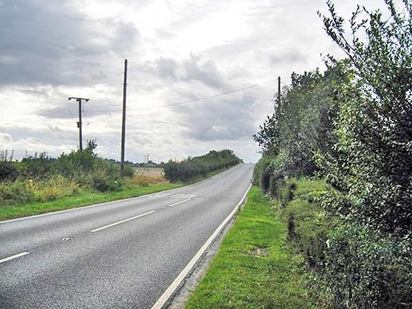 ![]() Looking towards Burwell along the B1103 in August 2008, the site of the former bridge over the railway is very obvious. The gap in the hedge on the left was not the entrance to the halt; this was further up the gradient. One may well ask the obvious question of why the halt entrances were not located at, as it were, ground level, thereby avoiding the need for precarious paths cut into embankment sides. The answer is because the railway predated the halts and property boundaries established, a ground level entrance would involve a path being laid parallel to the embankment on private land, which would have necessitated the purchase of land from the adjoining landowner plus all the associated legal costs.