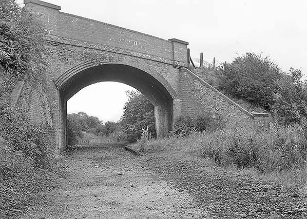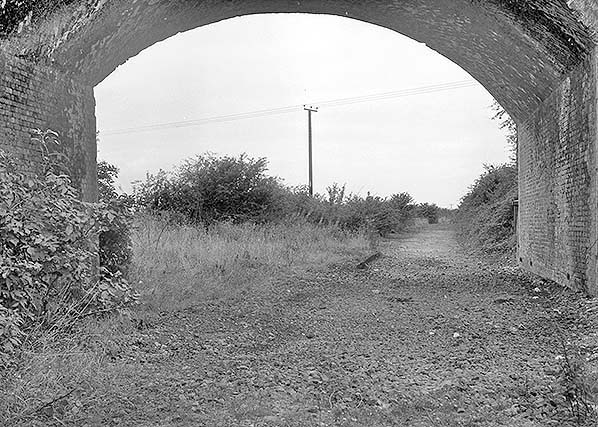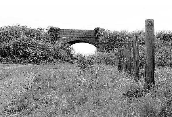 Copyright photo from Tony Harden collection ![]() The site of the halt in the late 1960s looking towards Burwell. The sleeper facing to the ground level cinder 'platform' remains visible on the left of the trackbed. There is evidence of the bridge beginning to deteriorate, but nevertheless it was to stand for another thirty years before being declared dangerous, and infilled.