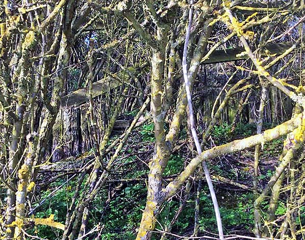the taller bush is seen. Photo by Nick Catford ![]() Top of access path from road to the platform in March 2021.