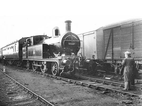Photo from Whitworth Historical Society ![]() Aspinall 2-4-2T No.50647 is seen at Facit on 12 May 1956. The loco is about to haul the 5-coach SLS/MLS ‘Old Manchester Rail Tour’ back to Rochdale. No.50647 was built at the Lancashire & Yorkshire Railway’s Horwich works in September 1890. Numbered 1052 by the LYR she was re-numbered 10647 by the LMS and 50647 by British Railways. She remained in service until February 1959 when she was withdrawn from 26C, Bolton shed. In November 1959 the loco was cut up by Motherwell Machinery & Scrap, Inslow Works, Wishaw.