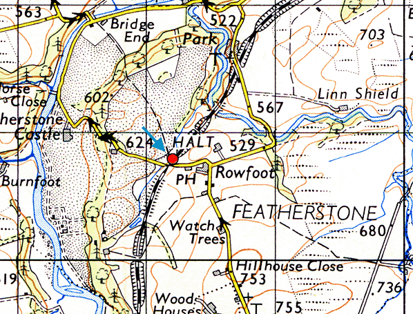 Location: | On the north side of Hall Bank at former level crossing, between the hamlet of Rowfoot and Featherstone Castle |