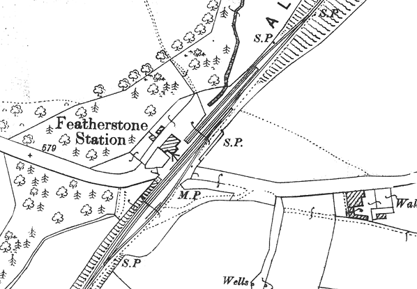Notes: Few stations equalled the rural charm of Featherstone Park. On a visit in September 1962 the station resembled a neglected farmyard. Hens strolled around on the platform’s crumbling tarmac. Victorian oil lamps adorned the platform, with tiny tablets giving the station name; one rendered it Featherston Park. Behind the siding stretched the disused loading dock ending with a grassy bank; here, many yards from the passenger platform, was the large, lopsided, and almost illegible nameboard. At the southern end of the platform were the house and hipped-roofed signal box, adjacent to the level crossing. Beyond the gated level crossing and, like the passenger facilities, west side of the running line, was an abandoned signal box. Abandoned coal cells stood across the line from the old signal box.