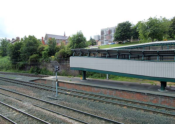 ![]() Felling Metro station looking south-east in June 2011. The station’s island platform was extended eastwards and an enormous gently graded ramp was installed post-2005, to make the station ‘accessible’.