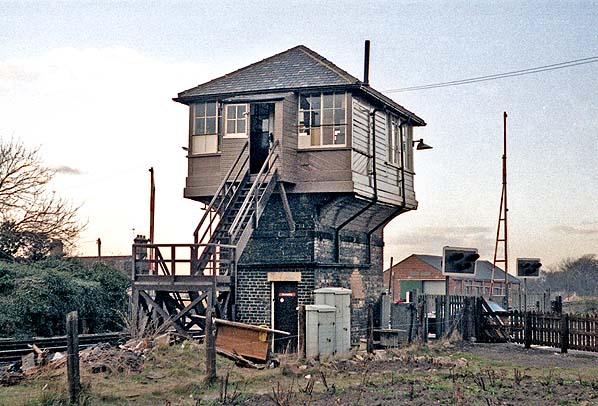 Fencehouses signal box c1990, looking north with the former goods shed in the background.