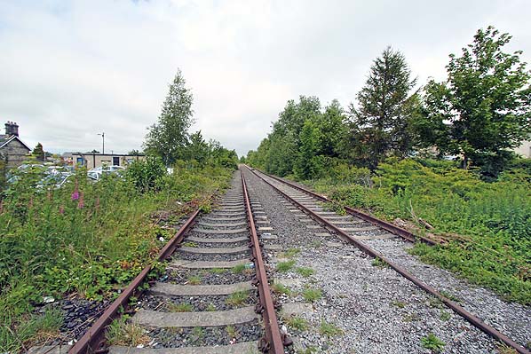 ![]() Looking south from the level crossing at Fencehouses in June 2011. The site of the station was behind the camera. Vegetation is encroaching upon the tracks.