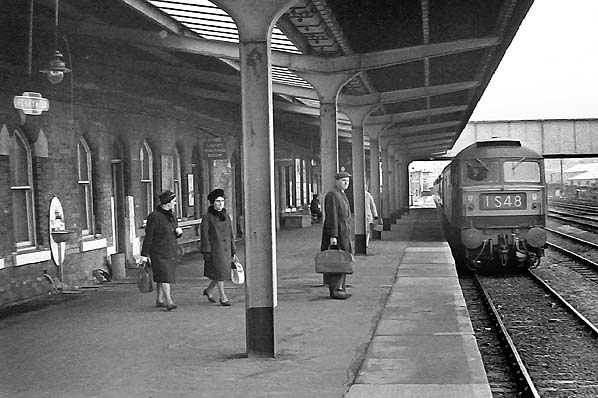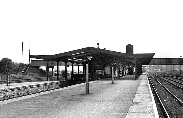 In January 1948 the East Coast main line between Shaftholme Junction (Doncaster) and the Scottish border and the other former NER lines became part of the new nationalised British Railways’ North Eastern Region. Early in this era the ridge-and-furrow roofing gave way to much simpler steel-framed awnings. Whilst the LNER running-in nameboards with metal letters on wood were retained, in the early 1950s BR fitted totem name signs and replaced the casement-style gas lamp standards with Sugg gas lamps on curved pipes supported by concrete posts.