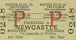 In its earlier years the station name was ‘Ferry Hill’ in some timetables. The Clarence Railway was the first to provide a (horse-drawn) passenger service to Ferryhill on its route between Stockton-on-Tees and Crow Trees (also referred to as Quarrington). When the York, Newcastle & Berwick Railway opened its route through Ferryhill on 18 June 1844 it is not known whether the existing Clarence Railway station continued to be used alongside the YN&B. The route taken by the railways used a north-south gap through the East Durham plateau, which required enlarging by the Clarence Railway company: a huge cutting 75yd wide and 67ft deep was excavated. This route left Ferryhill village almost a mile north-west of the station(s).
