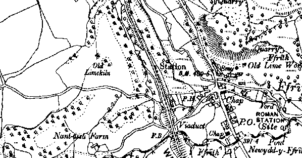 Master. Ffrith didn't handle goods traffic but was provided with a single siding opposite the platform. Just to the south of the station the line crossed the Nant Ffrith valley by means of an imposing stone viaduct.