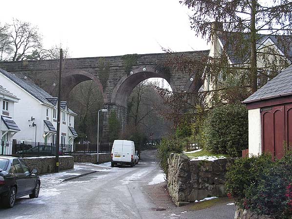 Looking west towards the viaduct that carried the line over the Nant Ffrith valley at Ffrith in December 2009. The station was located out of view off towards the right of the picture high above the houses.