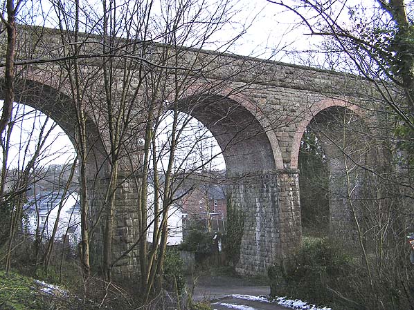 Looking east at the viaduct that carried the line over the Nant Ffrith valled in December 2009. The station would have been off to the left of the picture.