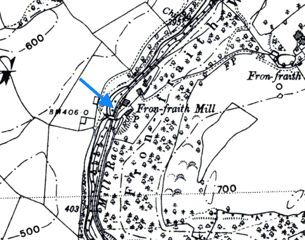 There was a siding at Ffronfraith which was listed in the Railway Clearing House Book of Stations 1904 as being under the supervison of Kerry station. The siding served the Ffronfraith Mill which was located on the east side of the line.
