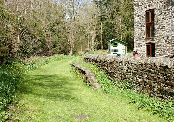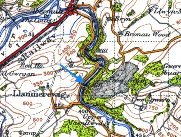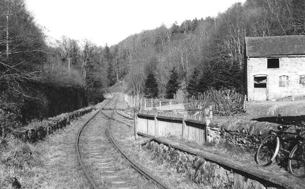 The GWR most have hoped to increase passenger traffic by opening Ffronfraith Halt on 9 July 1923. It had a short platform on the east side of the line which was constructed from stone backfilled with cinders. Access was via a sloping path that led up to a bridge that spanned the line and linked to the Kerry - Abermule road. The mill was adjacent to the halt.