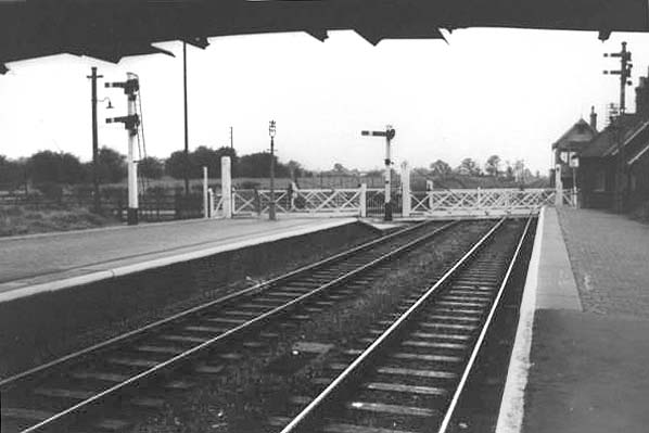 Looking south from Firsby station down platform in October 1970, the last week of public service