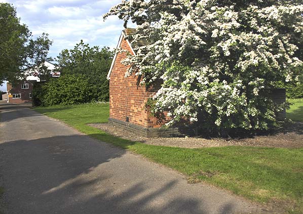 Looking north along the road to the goods yard in June 2006. The weigh office can be seen behind the tree with the goods shed in the distance.