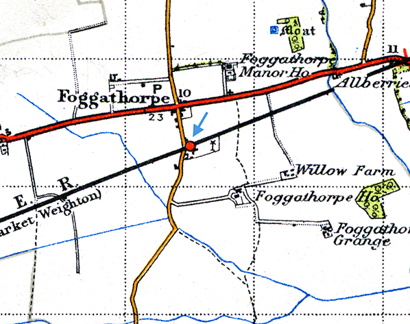 Notes: Although the line opened on 1st August 1848 it is unclear when Foggathorpe Gate station actually opened. It may have opened with the line, but probably only on market days and with limited or no facilities. The station first appeared in public timetables in November 1851. The 1854/5 1:1000 Ordnance Survey map shows a level crossing, Foggathorpe Gate, but no station. Although the station was open by this date the survey was made some years before the publication date.