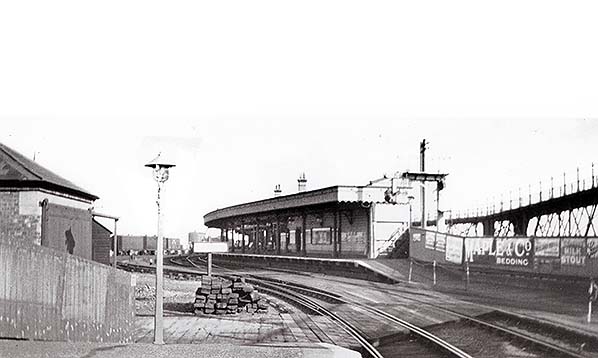 ![]() The 1876 pier platform seen from the north end of the Folkestone Harbour down platform in the early twentieth century. The iron walkway on the right leads onto the promenade on top of the pier and the line trailing in from the right leads to the carriage berthing sidings. The platform will eventually be incorporated into an extended Folkestone Harbour station up platform.