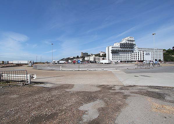 The site of the carriage berthing sidings to the west of the station in May 2015. This was a public car park, but it has now closed and the land is presumably awaiting development.