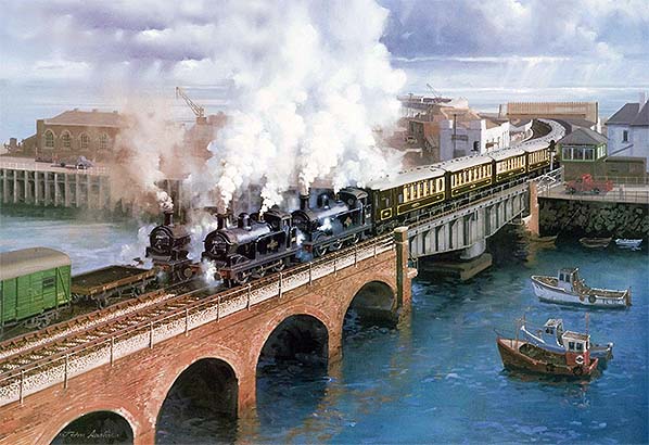 A boat train is seen leaving Folkestone Harbour station in the 1950s