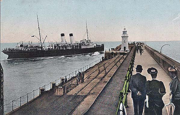 A Boulonge ferry is seen leaving Folkestone harbour in the 1930s.