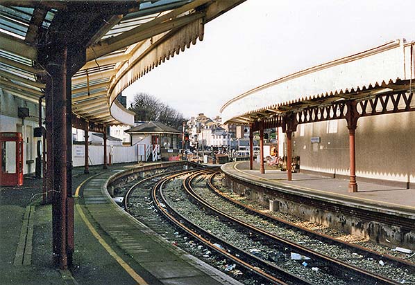 Folkestone Harbour station looking north from platform 2 in March 1999; two years before regular services were withdrawn.