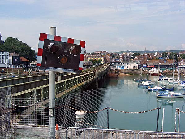 Folkestone Harbour swing bridge, viaduct and the outer harbour looking north in June 2007.